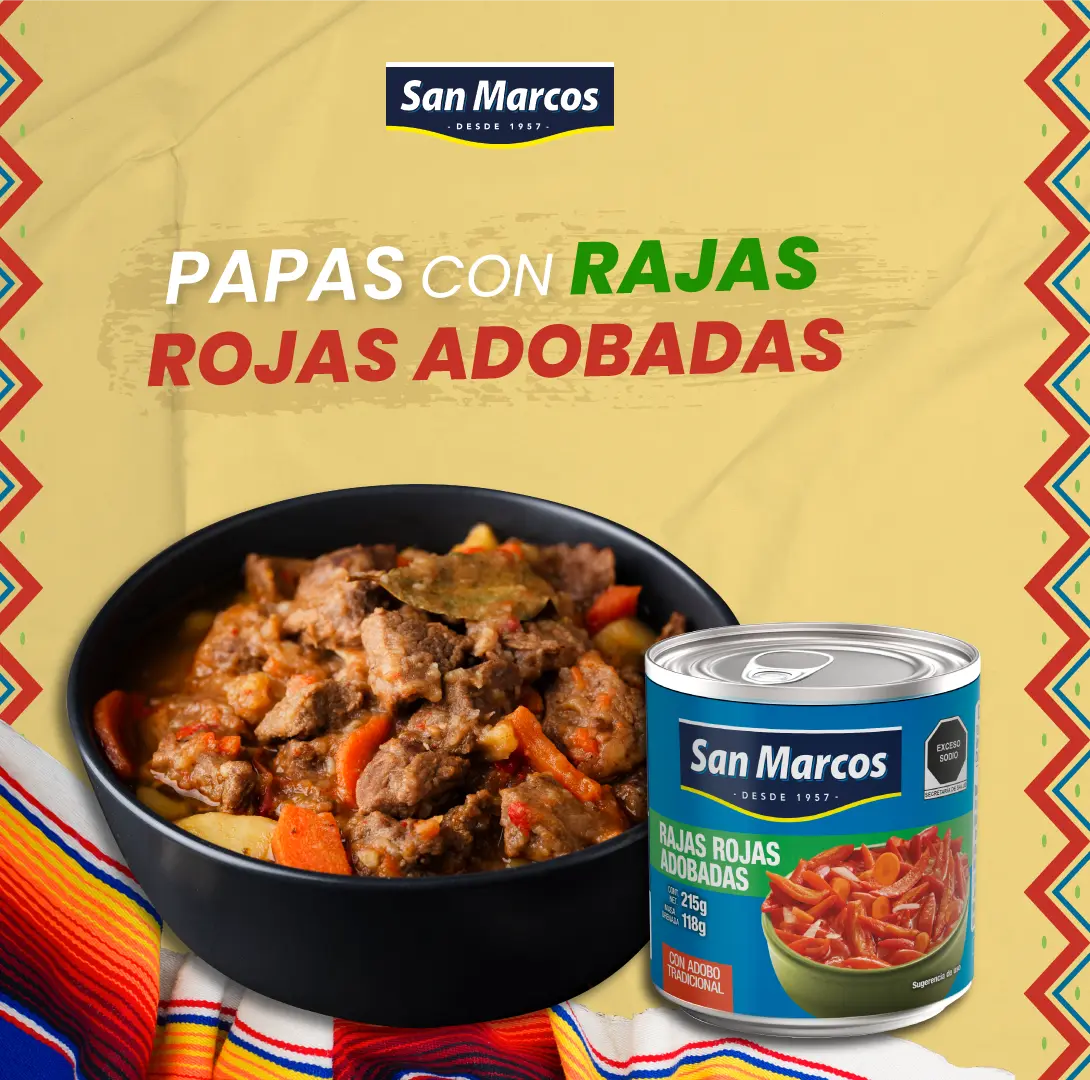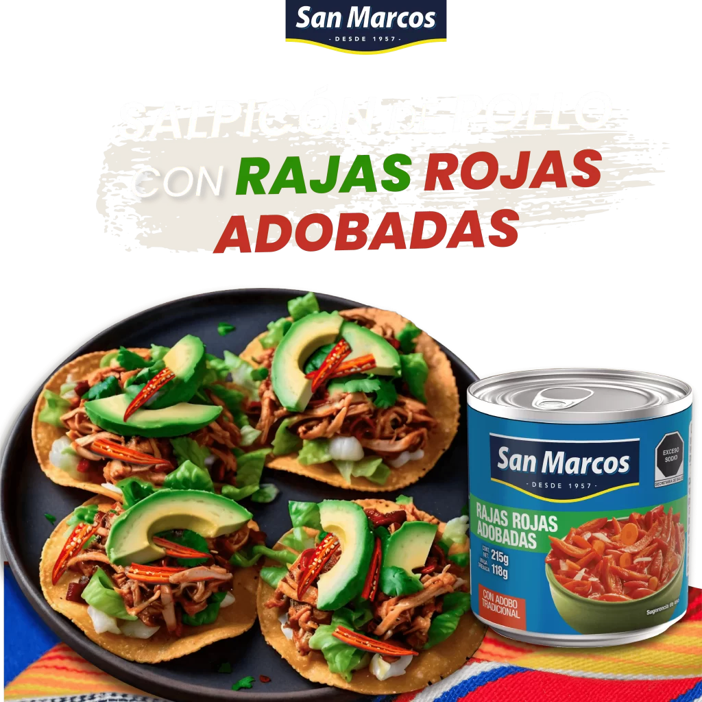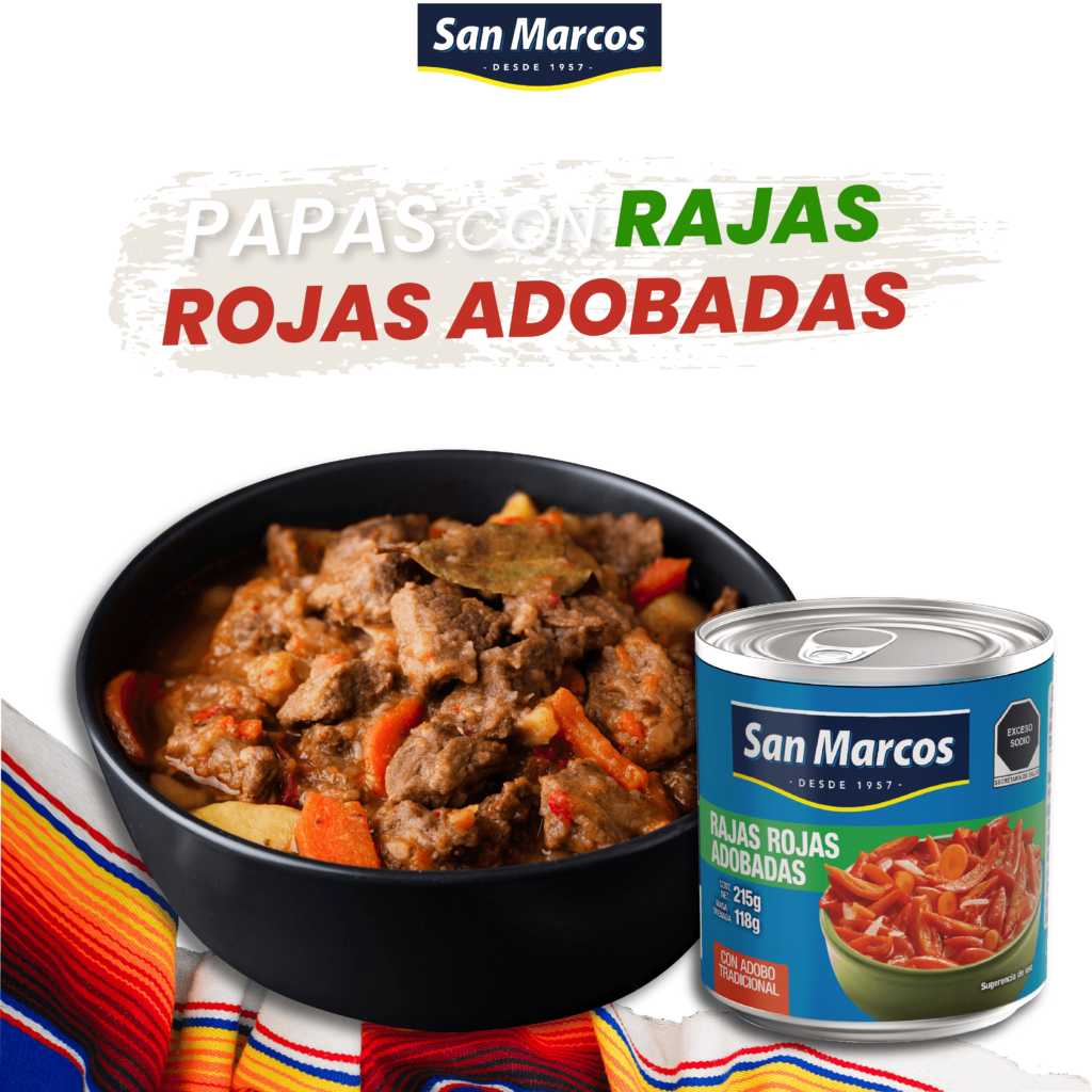 – Corta las rajas rojas adobadas San Marcos en cubos e incorpóralas. Cocina por unos minutos hasta que estén suaves.